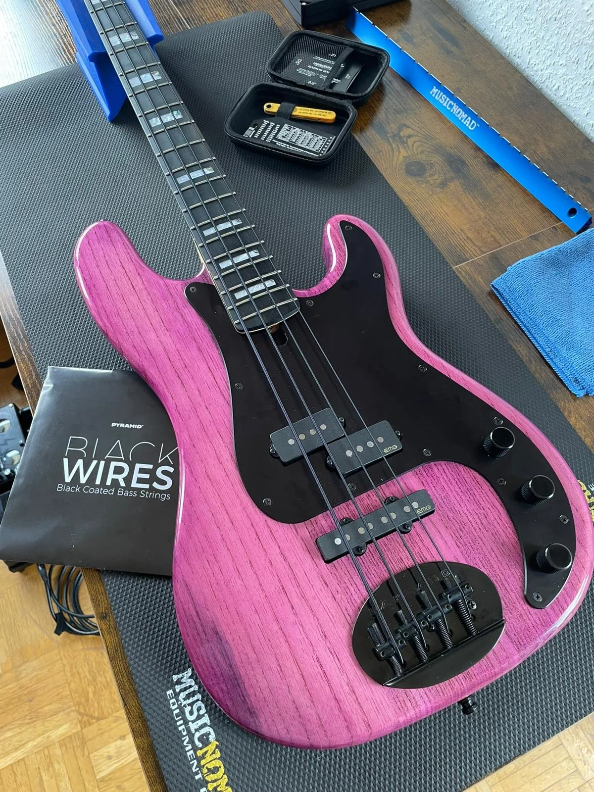 Ich habe jederzeit eine Auswahl der gängigsten Saiten auf Lager, sofort verfügbar und fachgerecht aufgezogen oder zu dir nach hause geliefert. Auf Wunsch können ALLE Saiten, inklusive Custom-Shop Saiten, wie zum Beispiel die 55-75-100-125 Black Wires auf meinem eigenen Bass, bestellt werden.